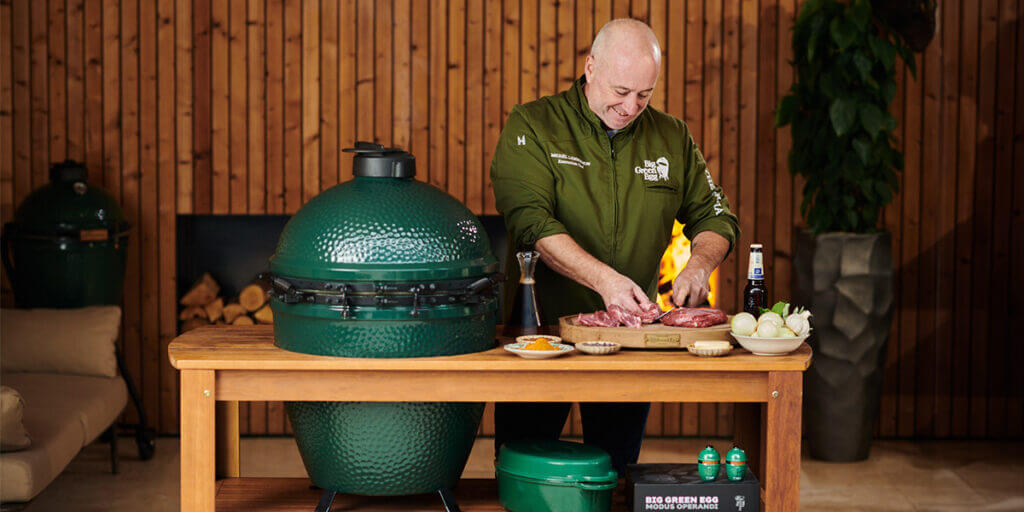 1. Uždekite anglį „Big Green Egg“ kepsninėje ir, uždėję ketaus groteles, įkaitinkite iki 220 °C temperatūros.