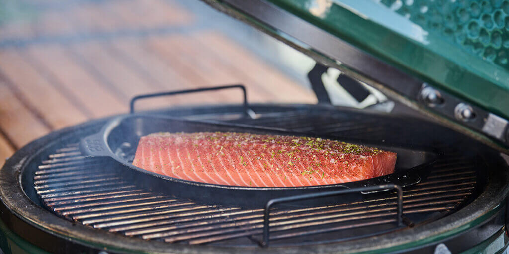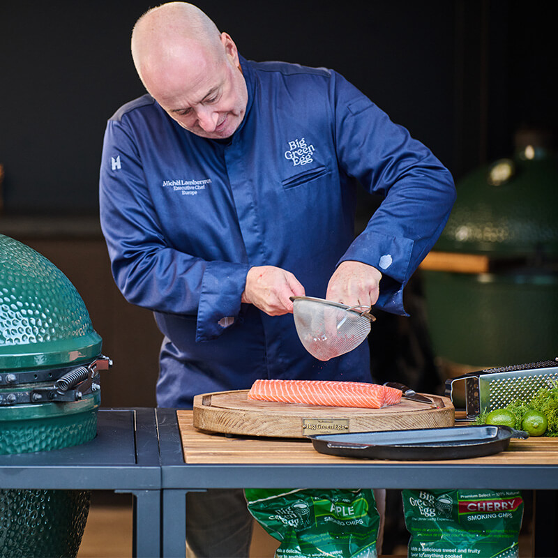 Norite patiekti ką nors greito ir gardaus? Išbandykite šį „Big Green Egg“ karštai rūkytos lašišos receptą. Lėtai rūkant ir kepant lašišos filė žemoje temperatūroje šioje kepsninėje, žuvis įgauna nuostabiai minkštą tekstūrą ir subtilų dūmų skonį. Patiekite rūkytą lašišą visą didelėje lėkštėje, kad svečiai galėtų patys atsipjauti ar atsignybti norimą gabalėlį. Būtent todėl mes ją vadiname „lašišos padėklu“. Tai puikus pasirinkimas pietums, vėlyviesiems pusryčiams (brunch) ar neoficialiam užkandžiui, taip pat neįtikėtinai skanu vakarėlio metu.