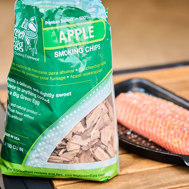 Užberkite saują obels medžio skiedrų ant žėrinčių anglių ir įdėkite convEGGtor laikiklį. Įstatykite nerūdijančio plieno groteles, o ant jų padėkite perforuotas groteles su lašiša. Uždarykite dangtį ir nustatykite 90°C temperatūrą. Įdėjus ConvEGGtor laikiklį, temperatūra gerokai nukris, tad ją lengvai sureguliuosite.