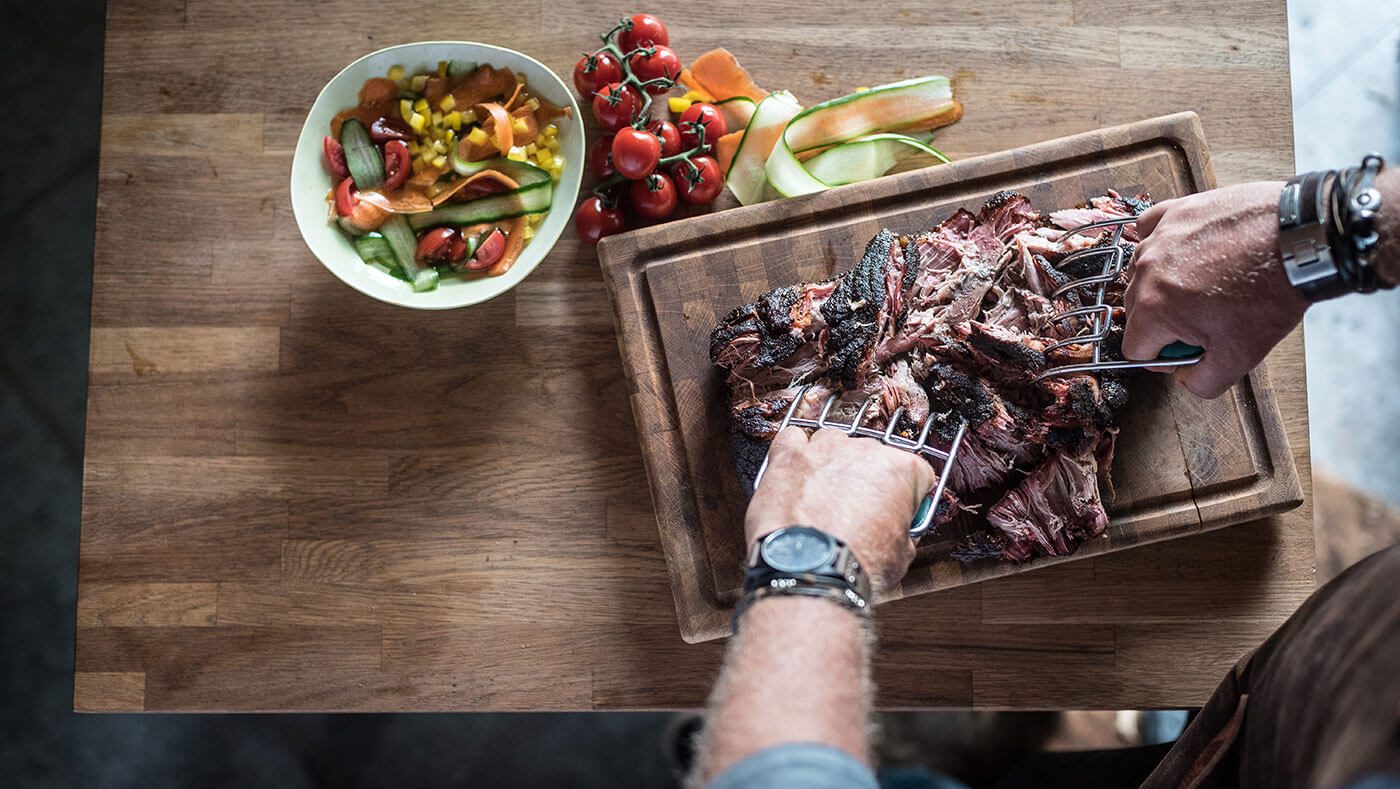 Karščiausia tendencija kulinarijos pasaulyje – maisto gaminimas žemoje temperatūroje! Ir ne veltui, mat dideli mėsos gabalai, iškepti Big Green Egg kepsninėje žemoje temperatūroje, tampa nepaprastai gardūs ir sultingi. Dar vienas privalumas – taip paruošti maistą labai paprasta, suklysti beveik neįmanoma, o turėdami įsmeigiamą termometrą galėsite tiksliai reguliuoti kepimo laiką.