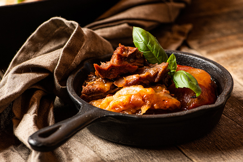 Džiovintų žolelių patale ir molyje kepta elnienos filė