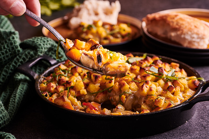 Rūkytos šukutės su mocarela ir keptomis paprikomis