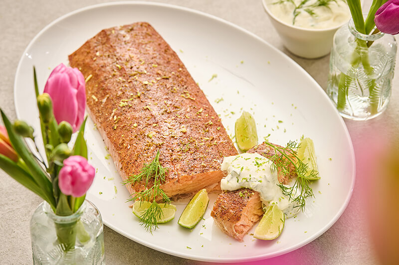 Rūkyta lašiša su krapų padažu